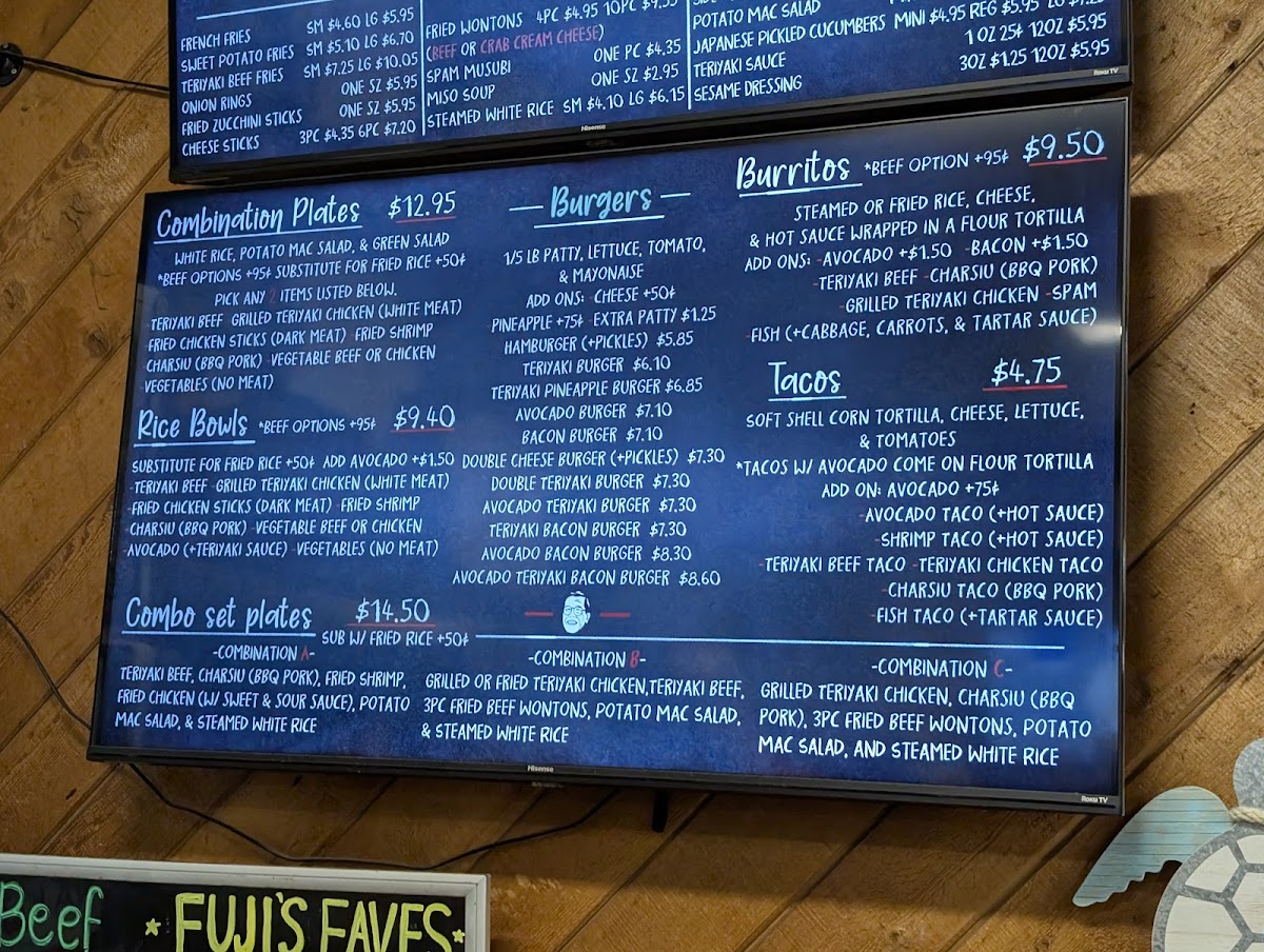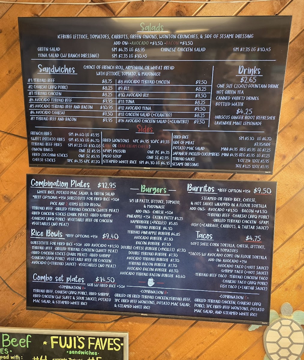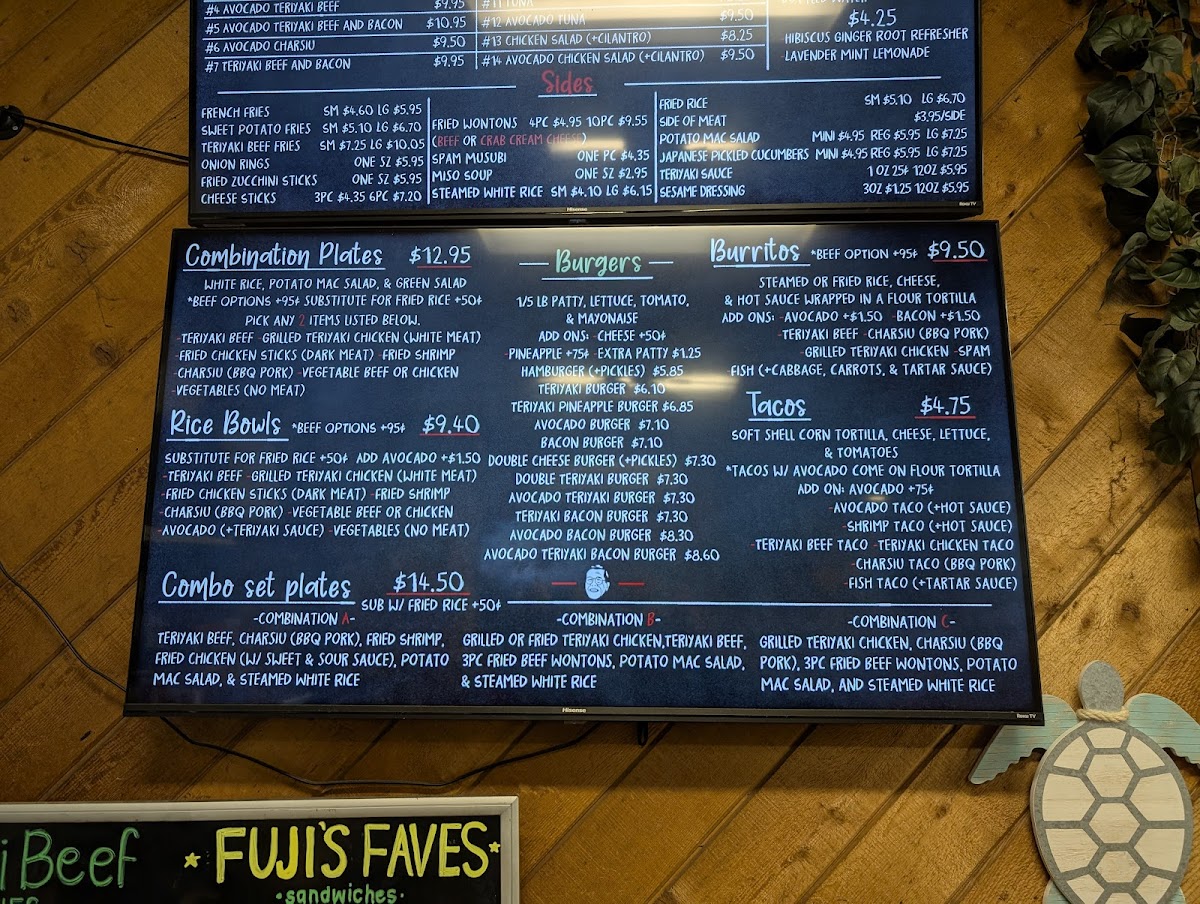 Among Fuji's favorites, the Double Avo Teriyaki Bacon Cheeseburger reigns supreme. Customers rave about its rich and satisfying flavors, with the creamy avocado perfectly complementing the savory teriyaki sauce and juicy beef patty. If you're feeling adventurous, don't miss the chance to try the off-menu Potato Mac Mashed Bowl, often praised by loyal patrons. With fresh ingredients and generous portions, Fuji's consistently impresses with their hearty burgers and tasty sides.